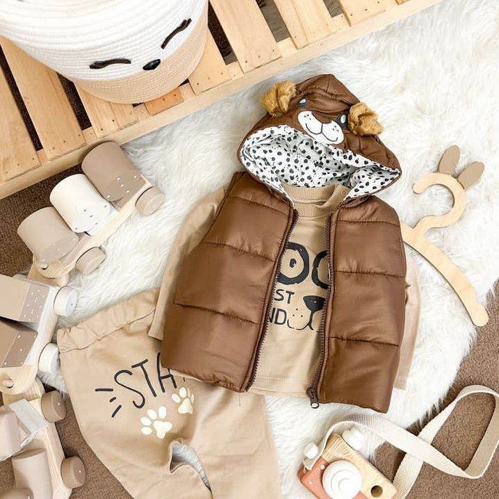 Стилен детски комплект от 3 части с кафяв елек